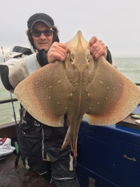 Local angler Steve from Ashford Kent with a fine Blonde Ray which weighed 14LBS 6OZ fishing onboard Elizabeth Jane today