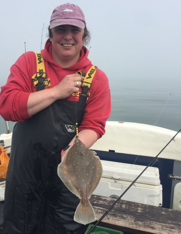 Dave Parkin with a nice plaice aboard Elizabeth Jane