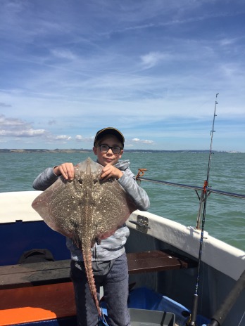 Young Robert on his first boat fishing trip landed this lovely 8lb ray. Well done mate!