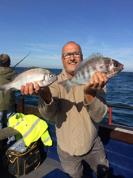 Sid Webb and crew from Bexley Heath with a 6lb cod and some nice Black Bream on board Elizabeth Jane today.